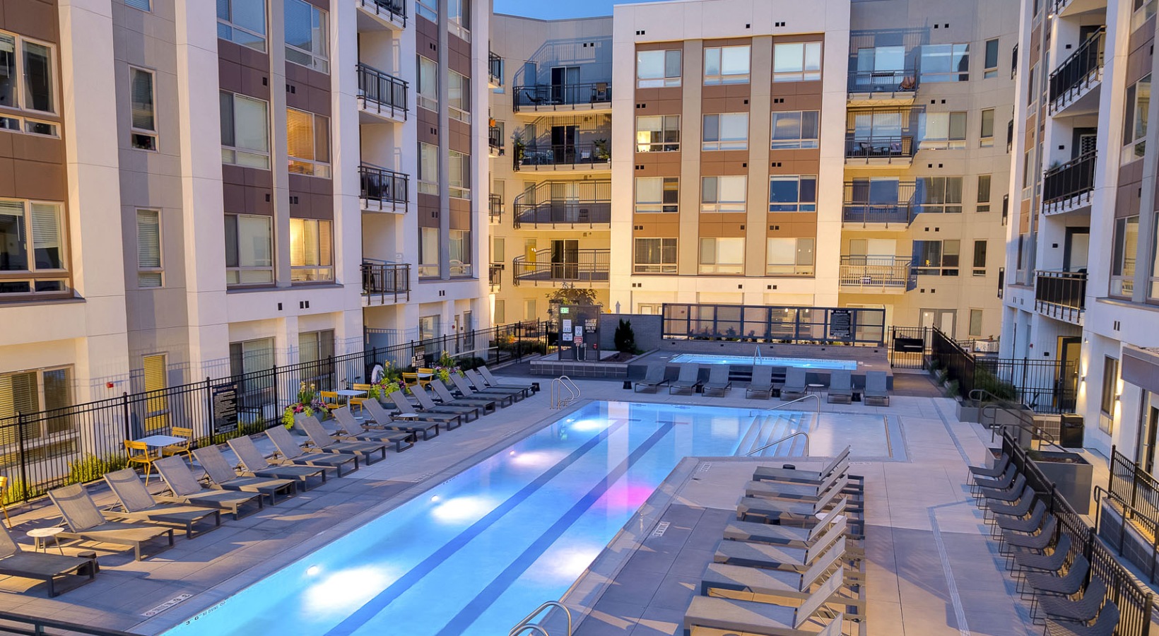 Enjoy a resort-inspired lifestyle with a heated pool overlooking the Rockies, a 24-hour fitness center featuring strength and cardio zones, and an elegant clubhouse perfect for entertaining.